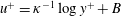 $u^{+}=f_{1}(Re_{i})\log (y^{+})+f_{2}(Re_{i})-\unicode[STIX]{x0394}u^{+}$