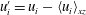 $u_{i}^{\prime }=u_{i}-\langle u_{i}\rangle _{xz}$