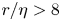 $r/\eta < 5$, the data from the small FOV depart sharply from the exponential decay displayed at larger separation, while for