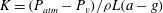$K=(P_{atm}-P_{v})/{\it\rho}L(a-g)$