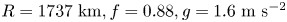 $R=1737\ \mathrm {km}, f=0.88, g=1.6\ \mathrm {m\ s}^{-2}$) and a fully molten planetesimal (