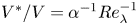 ${V^\ast }/V = {\alpha ^{ - 1}}Re_\lambda ^{ - 1}$, where