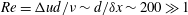 $Re=\unicode[STIX]{x0394}ud/\unicode[STIX]{x1D708}\sim d/\unicode[STIX]{x1D6FF}x\sim 200\gg 1$