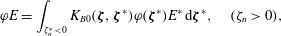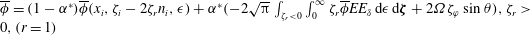 $$\begin{eqnarray}\displaystyle I & = & \displaystyle \unicode[STIX]{x03C0}\int _{0}^{\infty }\int _{0}^{\text{Arcsin}(1/r)}\unicode[STIX]{x1D701}^{4}\sin ^{3}\unicode[STIX]{x1D703}_{\unicode[STIX]{x1D701}}\nonumber\\ \displaystyle & & \displaystyle \times \left[\left(1-\frac{\unicode[STIX]{x1D708}_{c}r\cos \unicode[STIX]{x1D703}_{\unicode[STIX]{x1D701}}}{k\unicode[STIX]{x1D701}}\right)\unicode[STIX]{x1D719}_{S}(1,\unicode[STIX]{x1D703}_{\unicode[STIX]{x1D701}0},\unicode[STIX]{x1D701})+\frac{r\cos \unicode[STIX]{x1D703}_{\unicode[STIX]{x1D701}}}{k\unicode[STIX]{x1D701}}S_{1}(1,\unicode[STIX]{x1D703}_{\unicode[STIX]{x1D701}0},\unicode[STIX]{x1D701})\right]\exp \left(-\frac{\unicode[STIX]{x1D708}_{c}\unicode[STIX]{x1D70E}_{B}}{k\unicode[STIX]{x1D701}}\right)E\,\text{d}\unicode[STIX]{x1D703}_{\unicode[STIX]{x1D701}}\,\text{d}\unicode[STIX]{x1D701}\nonumber\\ \displaystyle & & \displaystyle -\,\frac{\unicode[STIX]{x03C0}}{k}\int _{0}^{\infty }\int _{0}^{\text{Arcsin}(1/r)}\frac{r^{2}\unicode[STIX]{x1D701}^{3}\sin ^{5}\unicode[STIX]{x1D703}_{\unicode[STIX]{x1D701}}}{(1-r^{2}\sin ^{2}\unicode[STIX]{x1D703}_{\unicode[STIX]{x1D701}})^{1/2}}\left[\unicode[STIX]{x1D708}_{c}\unicode[STIX]{x1D719}_{S}(1,\unicode[STIX]{x1D703}_{\unicode[STIX]{x1D701}0},\unicode[STIX]{x1D701})-S_{1}(1,\unicode[STIX]{x1D703}_{\unicode[STIX]{x1D701}0},\unicode[STIX]{x1D701})\vphantom{\frac{(1-\unicode[STIX]{x1D701})}{\unicode[STIX]{x2202}\unicode[STIX]{x1D703}_{\unicode[STIX]{x1D701}0}}}\right.\nonumber\\ \displaystyle & & \displaystyle -\left.\frac{k(1-\unicode[STIX]{x1D6FC})\unicode[STIX]{x1D701}}{r\sin \unicode[STIX]{x1D703}_{\unicode[STIX]{x1D701}}}\frac{\unicode[STIX]{x2202}\unicode[STIX]{x1D719}_{S}(1,\unicode[STIX]{x03C0}-\unicode[STIX]{x1D703}_{\unicode[STIX]{x1D701}0},\unicode[STIX]{x1D701})}{\unicode[STIX]{x2202}\unicode[STIX]{x1D703}_{\unicode[STIX]{x1D701}0}}\right]\exp \left(-\frac{\unicode[STIX]{x1D708}_{c}\unicode[STIX]{x1D70E}_{B}}{k\unicode[STIX]{x1D701}}\right)E\,\text{d}\unicode[STIX]{x1D703}_{\unicode[STIX]{x1D701}}\,\text{d}\unicode[STIX]{x1D701}\nonumber\\ \displaystyle & & \displaystyle +\,\frac{\unicode[STIX]{x03C0}}{k}\int _{0}^{\infty }\int _{0}^{\text{Arcsin}(1/r)}\unicode[STIX]{x1D701}^{3}\sin ^{3}\unicode[STIX]{x1D703}_{\unicode[STIX]{x1D701}}\int _{0}^{\unicode[STIX]{x1D70E}_{B}}{\mathcal{D}}\left(\frac{rS_{1}(\widetilde{r},\widetilde{\unicode[STIX]{x1D703}}_{\unicode[STIX]{x1D701}},\unicode[STIX]{x1D701})}{\widetilde{r}}\right)\nonumber\\ \displaystyle & & \displaystyle \times \exp \left(-\frac{\unicode[STIX]{x1D708}_{c}(\unicode[STIX]{x1D70E}_{B}-t)}{k\unicode[STIX]{x1D701}}\right)\text{d}tE\,\text{d}\unicode[STIX]{x1D703}_{\unicode[STIX]{x1D701}}\,\text{d}\unicode[STIX]{x1D701},\end{eqnarray}$$
