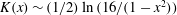 $K(x)\sim (1/2)\ln (16/(1-x^{2}))$