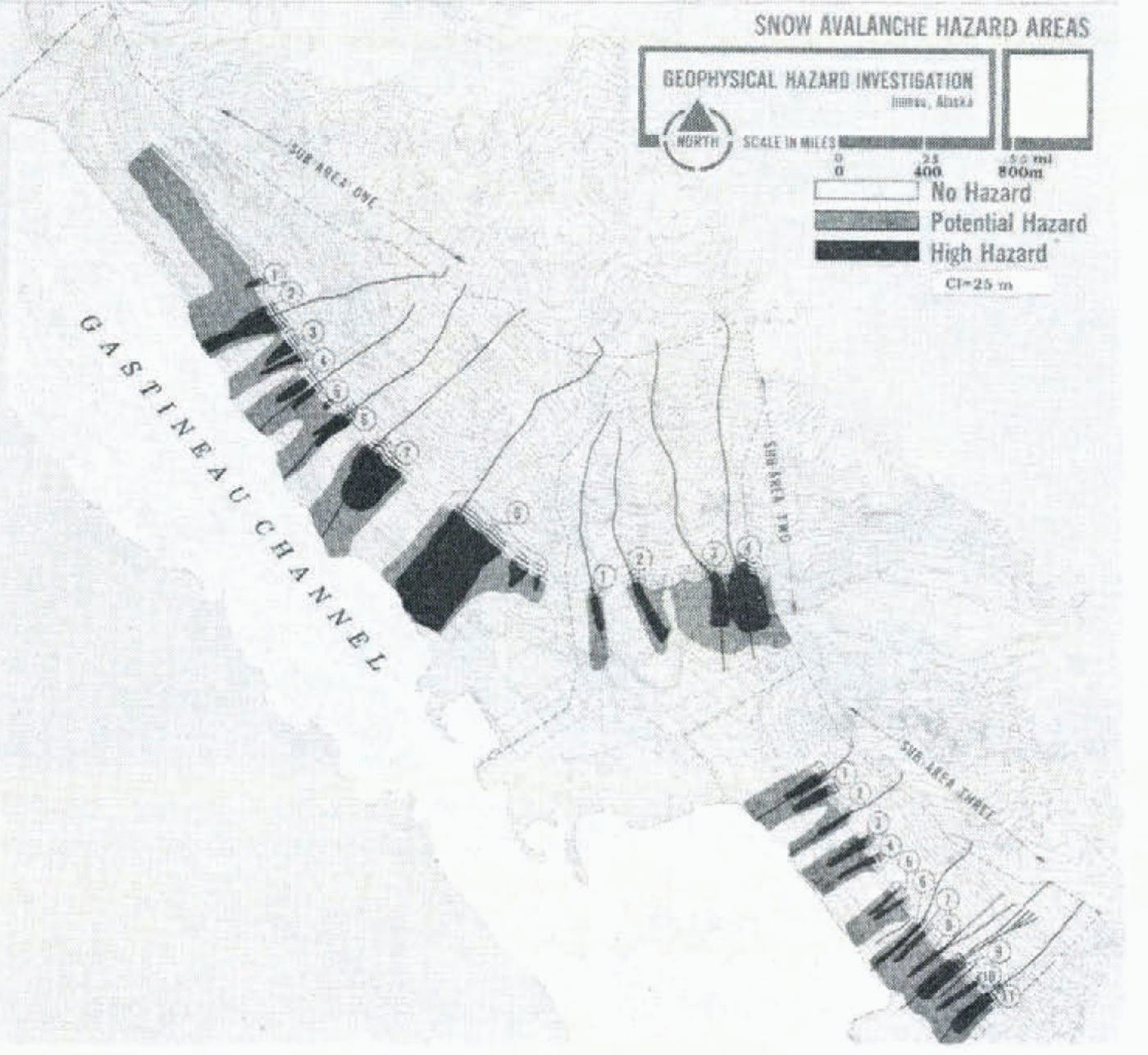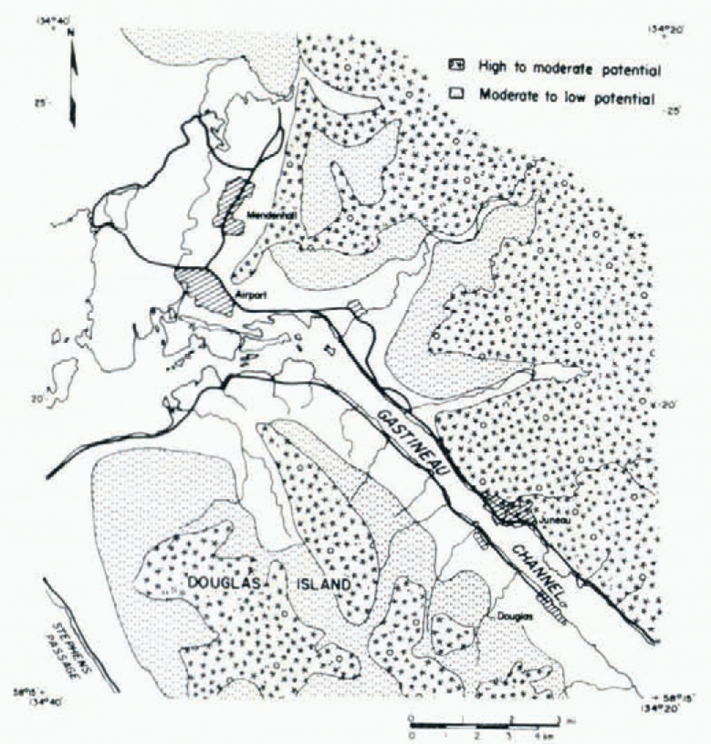 Fig. 11. Provisional snow avalanche potential map, Juneau area, South—eastern Alaska,