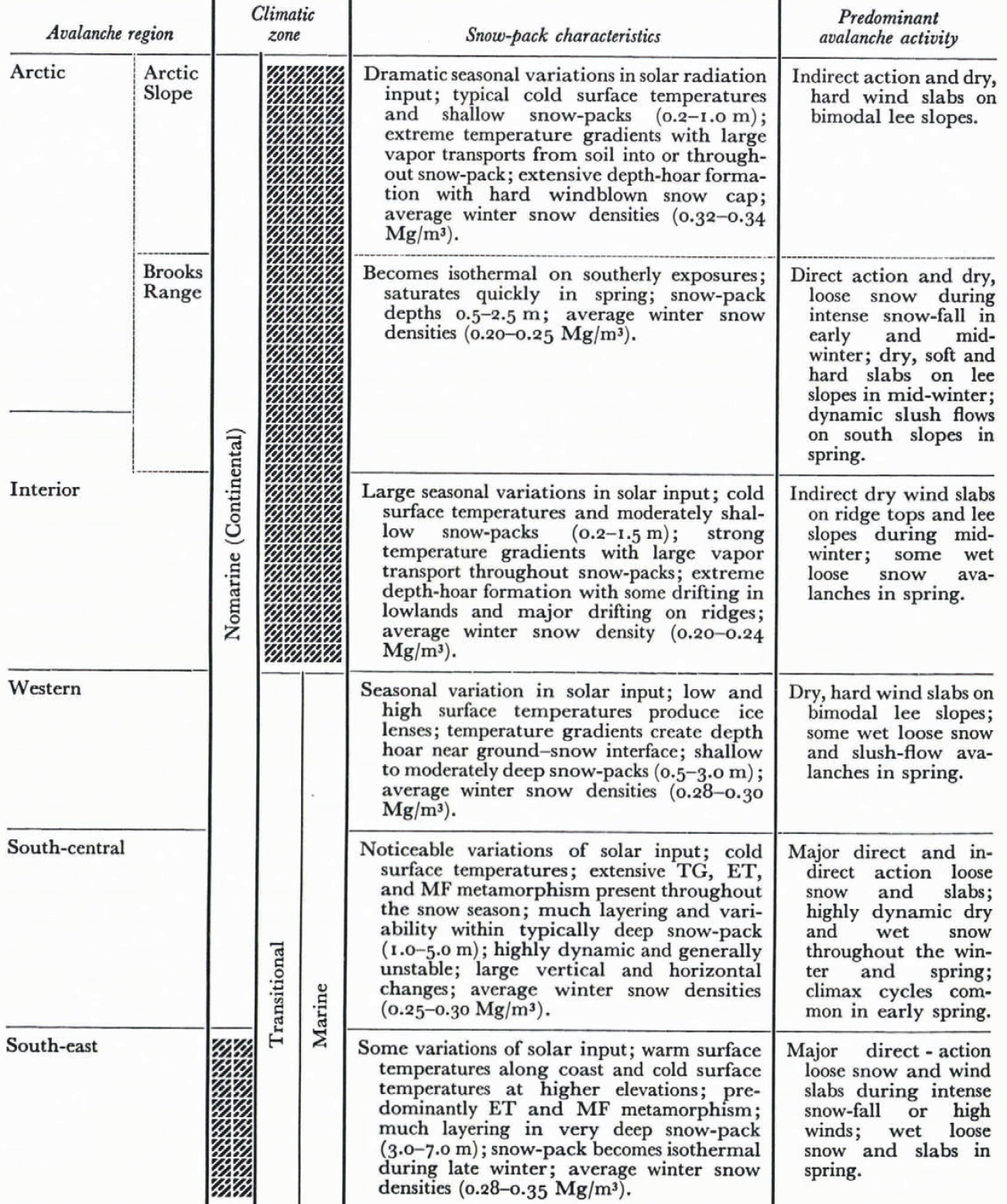 Table I. GENERALIZED AVALANCHE REGIONS IN ALASKA