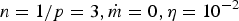 $\dot m = 0$ and different values of η, as indicated in the legend. Note that