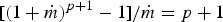 $[(1 + \dot m)^{p + 1} - 1]/\dot m = p + 1$ at