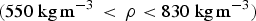 $(550{\kern 1pt} \,{\rm kg}\,{\rm m}^{ - 3}\, \lt \,\rho \lt 830\,{\kern 1pt} {\rm kg}\,{\rm m}^{ - 3})$