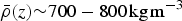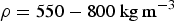 $\rho = 550 - 800\,{\kern 1pt} {\rm kg}\,{\rm m}^{ - 3}$