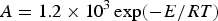 $A = 1.2 \times 10^3\exp ( - E/RT)$