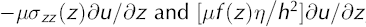 are to be solved for the velocity profile, u(z), and mean-square velocity, f(z). The boundary conditions for the shear stress are