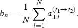 $$b_n = \displaystyle{1 \over N}\sum\limits_{i = 1}^N a_{ \bot i}^{(t_1 \to t_2 )}. $$