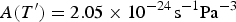 $A(T') = 2.05 \times 10^{ - 24} {\kern 1pt} {\rm s}^{ - 1} {\rm Pa}^{ - 3} $, resembling a constant relative temperature of