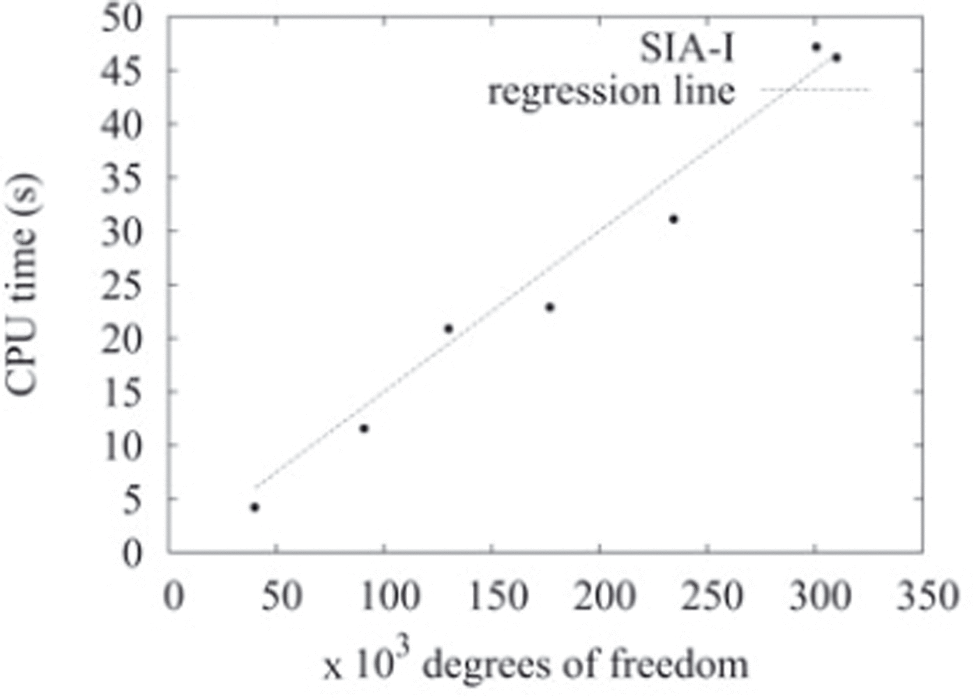 Fig. 8. CPU-time demands of the SIA-I algorithm as a function of degrees of freedom for the ISMIP-HOM A setting with