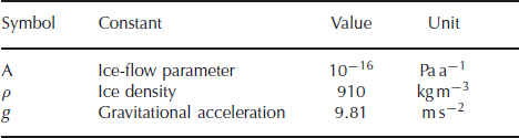 where A is an ice flow parameter and