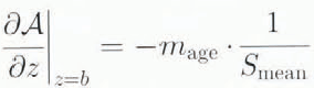 where mageis the thinning factor, chosen as mage= 200 and Smeanis the mean snowfall rate on the ice sheet (for further discussion see Reference Greve, Weis and HutterGreve and others (in press)). By choosing a typical ice thickness [H]= 3000 m and a typical vertical velocity [VH]= 0.1 ma−1, the time-scale for advection is