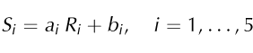 where Ri are the magnetic and gravity field strengths, Si are the readings of the sensor output, ai are the slopes of linear functions and bi are the offsets at zero field strength. The ten unknown parameters, ai and bi , must be determined by a calibration procedure.