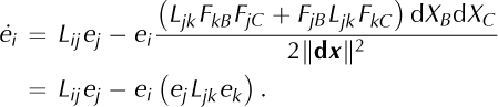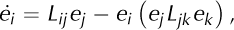denotes the components of the velocity gradient. That is, the evolution of ei is given by the projection of Lijej on a plane perpendicular to the vector ei . A detailed derivation of Eqn (4) is given in Appendix B.