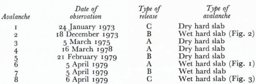Table I. Types of Release, and Type of Avalanche of the Eight Avalanches
