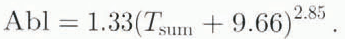 Having evaluated T sum and X sol for glaciers in all basins, we can turn to the main task of this paper, an estimation of the components of glacier mass exchange under the global temperature increase (2 × CO2 situation). To determine an ablation (Ab1) we have applied the formula of Reference Kotlyakov,Krenke and Khodakov (1966), as updated in 1980: