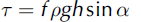 (Reference NyeNye, 1965), where ρ is the density of ice, g the gravitational constant, h the ice thickness and α the surface slope. Nye introduced the shape factor f to give a more realistic estimate of the shear stress in valley glaciers. f is a dimensionless parameter that varies with the geometry of the glacier. The difference between the balance and the dynamic fluxes at a given horizontal location x along the glacier gives the rate of mass increase above x.
