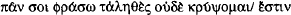 10  Cf. Bollack ad loc, who also summarizes the arguments in favour of the line's authenticity. Oedipus' use of  may be contrasted to that of another Sophoclean narrator, Lichas in Trachiniae, whose concern is clearly with veracity (Tr. 474–5):