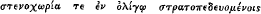 in the ordinary, and probably, though not certainly, correct interpretation of that word, I am not concerned to argue. The breadth would be small enough to give a prima facie plausibility to a theory that a policy of blocking had been intended. The point as to the impregnable character of the blocking would be a natural afterthought of the Spartans. There is nothing in the phrase ![]() to put out of the question the translation ‘ships with their prows facing each other.’ I have however examined all the passages I can find in which the word occurs in Greek, and have to admit that usage seems to give little support to this view. For other difficult places in which the word occurs in Thuc. cf. vii. 36, 3 (bis), vii. 40, 4. His use of the word