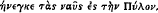 4  Our Pylos would be a not impossible, though inefficient, Sphacteria. Identification of the description is difficult, e.g. there is no level ground in the middle, and there are no ![]() on the west (Ib. iv. 26, 7).