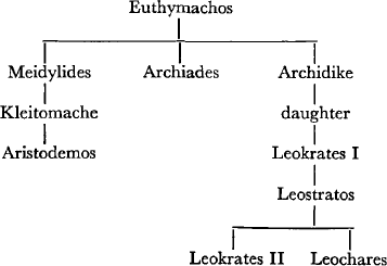 Aristodemos claims to be an ἀνϵψιαδοῦς of Leokrates II. By birth there is no such relationship. But Leokrates II is the adopted son of Archiades and by adoption first cousin to Aristodemos' mother. His claim makes sense only in the light of the adoption; cf. SirMiles, John, Hermathena lxxx (1952) 48–57.Google Scholar