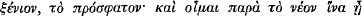 2 I translate ποταίνιος ‘novel, strange, unexpected, unprecedented’ in all its early occurrences, against LSJ and Italie, who attribute to it here and at Eum. 282 a purely temporal sense, ‘fresh, recent’. Typical instances are Soph. fr. 153 ![]()