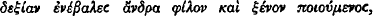 (The force of πρώτῳ is also important: ‘you were the first with whom …’: the plea is rejected, but on this, see below p. 80; further Od. xxi 27–9, 34–8). Note Odysseus' refusal to eat or drink with Kirke until his companions have been transformed back into human form: Od. x 383 ff. For later Greek belief, Deinarchos, in Dem. 24 ![]()