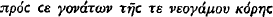 of Apollo seizing Kreousa in the rape scene) and Hecuba 246 (Odysseus touches Hecuba's knees in supplication ![]()