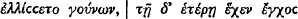 54 That it is ‘figurative’ (see 275 ff. for the language of supplication) is suggested by the length both of Hecuba's plea and of Odysseus' reply, by the extravagance of the apostrophe at 286 ff., and above all by Hecuba's words at 334 ff.: ![]()