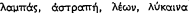 . 11. Δύο λαγίνια. 12.  . 13. Καποῦλα (=Catula? ) τοῦ Λέοντος. 14. Στάχυς. 15. ⟨Velamen?⟩. 16.