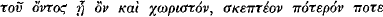 mit γωριστόν) toevoegsels een gewettigden argwaan; de twijfel, die sinds lang bestaat, wat betreft de Aristotelische echtheid van det boek K, wordt hierddor nog versterkt.