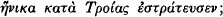 So Pearson. The strange series of hypodochmiacs here and at O.T. 1207 ff. (cf. E. Or. 982–4), with brevis in longo without pause at Aj. 421 and O.T. 1208 (possibly also 1217), seems metrically self-contained, despite their syntactical interdependence (esp. Aj. 421–2 οὐκέτ' ἄνδρα μὴ | τόνδ' ἴδητ', so that the word-overlap of οἷον into iambics in Pearson's text is unlikely. ἑξερῶ μέγα should therefore be written plena scriptura. Then οἷον οὔτιν' ἁ Τροί|α στρατοῦ… is possible, but the ithyphallic with word-overlap, sometimes found in the syncopated iambics of Aeschylus, is foreign to Sophocles. Divide ἐξερῶ μέγα, | οἷον οὔτινα | Τροία… Then ϕίλοι τοῖσδ' ὁμοῦ = οἷον οὔτινα, i.e. δ = hyp., which is not certainly found, and the antistrophe has two syllables extra.