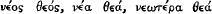 73 νέος, Heliodor. Aeth. I. 10, ὁ νέος Ἱππόλυτος of a chaste stepson. Alexander is νέος Ἡρακλῆς, νέος Σεσόγχωσις κοσμοκράτωρ, and Δαρεῖος νέος in Ps.-Callisth. Hist. pp. 16. 30, 37. 25, 97. 14, ed. W. Kroll. The magician Cyprian greeted by the devil as being νέος Ἰαμβρῆς, Confessio, p. 1114 A, Baluzius. Cf. also the naming of cities, Νέα Καρχηδών, Νέος Ἀγχίαλος.