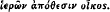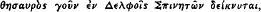 28 In these θησαυρός applies strictly and solely to various θησαυροφυλάκια or strongboxes within the precinct and in one case inside a temple. For ‘treasuries’ such as Pausanias saw on the Olympian terrace, the invariable word used is οἶκος.
