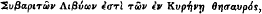 Proceeding along the terrace of the treasuries, Pausanias devotes the nineteenth chapter of his second book on Elis to passing in review the whole row of them, naming each according to the Hellenic community by which it was built and dedicated. First he notes the Sicyonians' treasury, then the ‘Carthaginians'’ (Syracusans'). At this point begins a confusion in his text which culminates in the startling declaration that the third and fourth treasuries are a dedication of the Epidamnians, a notable fact which he immediately denies by speaking of one and only one Epidamnians' treasury. After this he remarks that the Sybarites also built a treasury next to that of the Byzantines. This is disconcerting as he mentions the Byzantines' treasury nowhere else either before or afterwards. Next to the Sybarites' treasury, he then says, was that of the Libyans of Cyrene, in which he saw statues of Roman emperors.