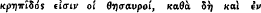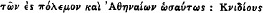 are cited as occurring in an Athenian decree inscribed upon the treasury. Another decree is cited where occur the words