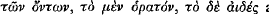 64 One might compare the terms ὄντα, ὄν and οὐσία used (1) generically, of the whole of reality including both Forms and particulars, and (2) particularly, of the highest reality, the Forms, alone. See for example Phaedo 79a which speaks of ![]()