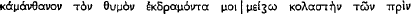 Sophocles now bathes the ears of his audience in κράτο and κρατεῑν—a theme first introduced at 373, repeated at 392, 400, 405, 408. But the hope of restoration is dashed: it is a matter of Oedipus coming under the mastery of Thebes and not even finding a grave in Theban soil. So he moves from the bitter grumble of his earlier speech (337 ff.) to the first tentative curse. ‘May the gods not quench their fatal strife, and may the decision (τέλος) concerning this their warfare come to be in my hand.’  (422 f.) corresponds to
