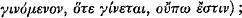 Here, Owen says in another context (p. 86), ‘it is allowed only to say what a γιγνόμενον was and will be’. What the sentence infact says is that it is proper to say of γένεσις that it was and will be, whereas of eternal being it is proper to say only that it is; it is not even forbidden here to say of γένεσις also that it is.