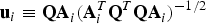 ${\bf u}_i \equiv {\bf QA}_i ({\bf A}_i^T {\bf Q}^T {\bf QA}_i )^{ - 1/2} $, with