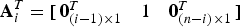 ${\bf A}_i^T = [\matrix{ {{\bf 0}_{(i - 1) \times 1}^T} & 1 & {{\bf 0}_{(n - i) \times 1}^T} \cr} ] $, i.e.,