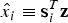 $\hat x_i \equiv {\bf s}_i^T {\bf z}$, where si is the
