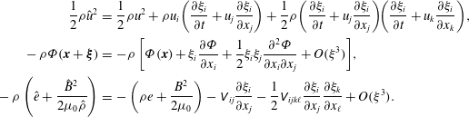 $$\begin{eqnarray}\frac{\text{D}{\it\delta}\boldsymbol{S}}{\text{D}t}=(\boldsymbol{{\rm\nabla}}\boldsymbol{\cdot }\boldsymbol{u})\,{\it\delta}\boldsymbol{S}-(\boldsymbol{{\rm\nabla}}\boldsymbol{u})\boldsymbol{\cdot }{\it\delta}\boldsymbol{S},\quad \frac{\text{D}{\it\delta}V}{\text{D}t}=(\boldsymbol{{\rm\nabla}}\boldsymbol{\cdot }\boldsymbol{u})\,{\it\delta}V,\end{eqnarray}$$