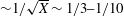 ${\sim}1/\sqrt{X}\sim 1/3{-}1/10$